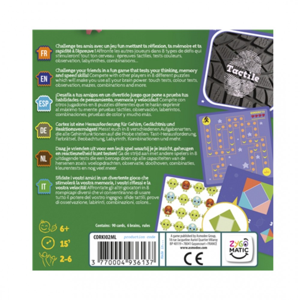 Diseñado especialmente para los más pequeños, CORTEX CHALLENGE 2 KIDS es un divertido juego que combina el desarrollo mental con la diversión. Los jugadores se enfrentan a una variedad de desafíos que ponen a prueba su lógica, memoria, observación y coordinación. Las cartas con texturas reales incluso añaden un desafío táctil que estimula los sentidos. Este juego fomenta el pensamiento rápido y la concentración en un formato lúdico y accesible. Las partidas son cortas e intensas, ideales para jugar en familia y conseguir que los niños se diviertan mientras ejercitan su cerebro. El objetivo es ser el primero en completar el puzle-cerebro resolviendo los desafíos antes que nadie.